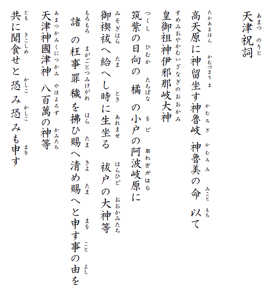 天津神國津八百万の神たち共に聞食せと(あまつかみ くにつかみ やおよろずのかみたち ともにきこしめせと):